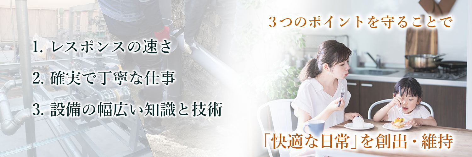 みなさまの快適な日常のために、弊社社員が一貫して大事にしている3つのポイントがあります。